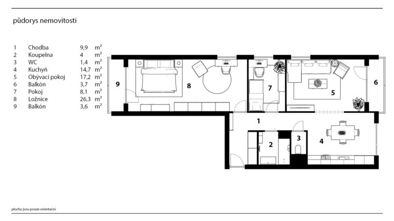 K příjemnému a komfortnímu bydlení přispívá 2x lodžie a okna do tří světových stran.