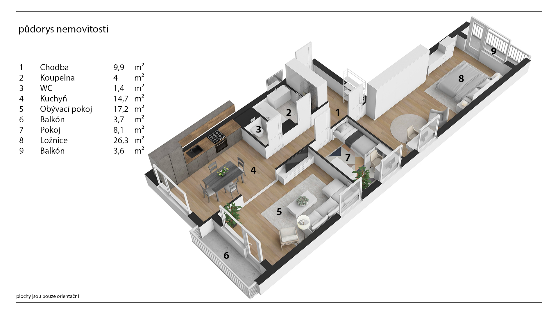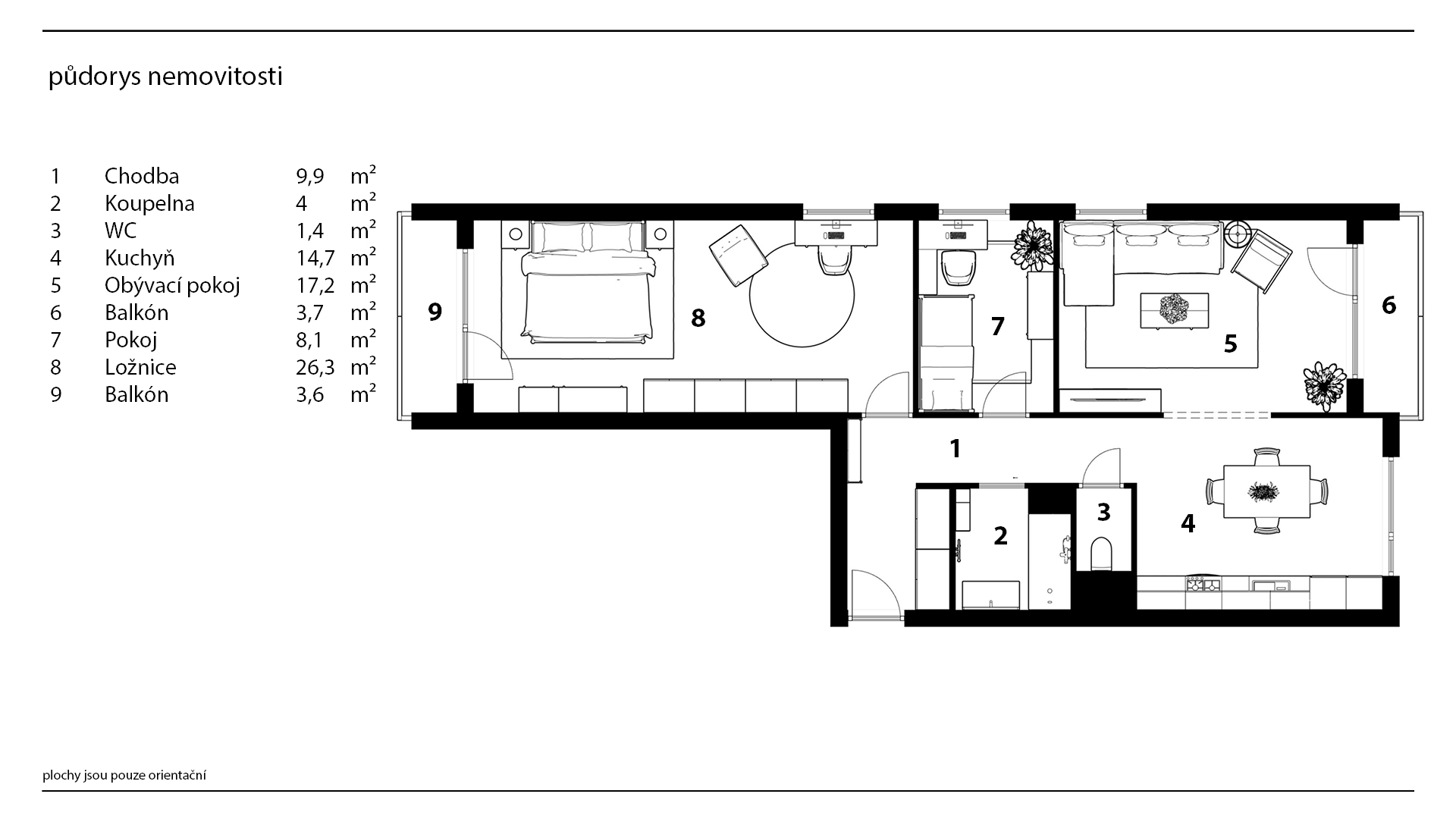 K příjemnému a komfortnímu bydlení přispívá 2x lodžie a okna do tří světových stran.
