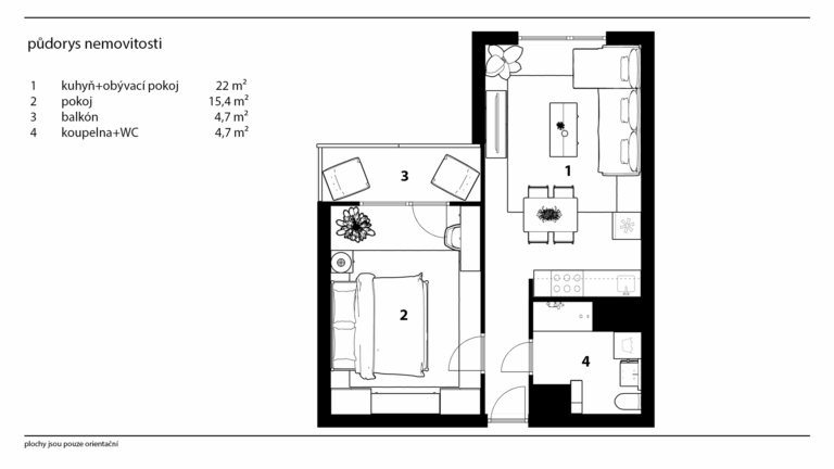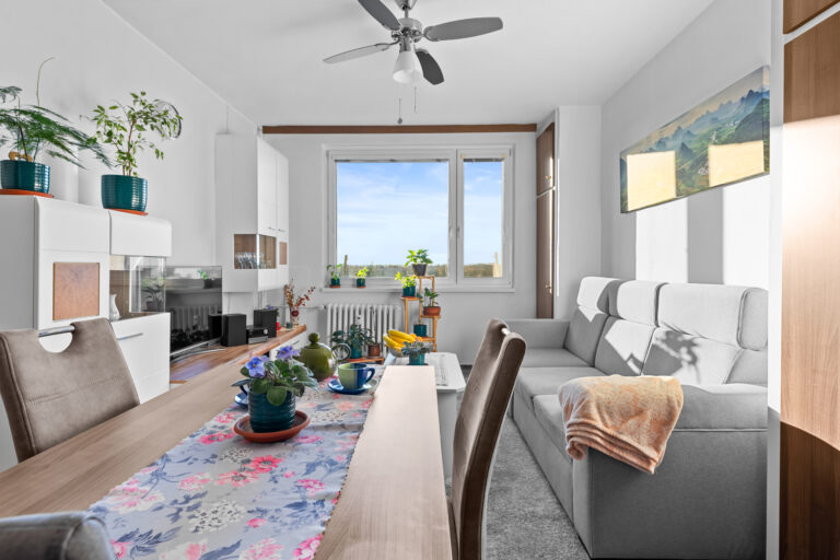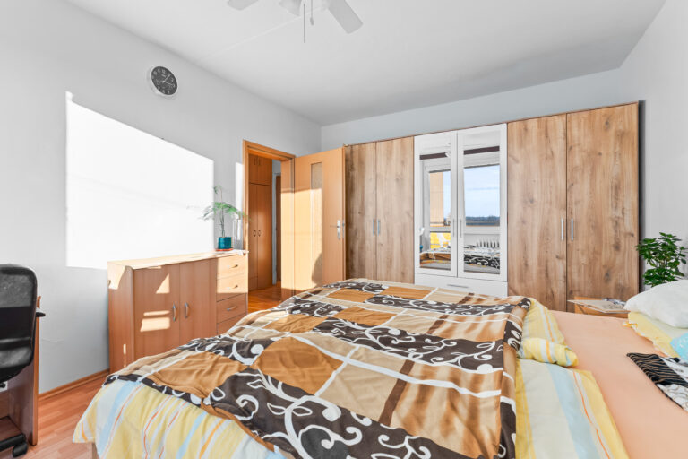 Dispozice bytu nabízí příjemné a vzdušné prostory s výhledem na okolní zeleň. Součástí bytu je také lodžie, kde můžete příjemně v klidu relaxovat. V bytě je k dispozici komora na patře, což poskytuje navíc úložný prostor pro vaše potřeby.