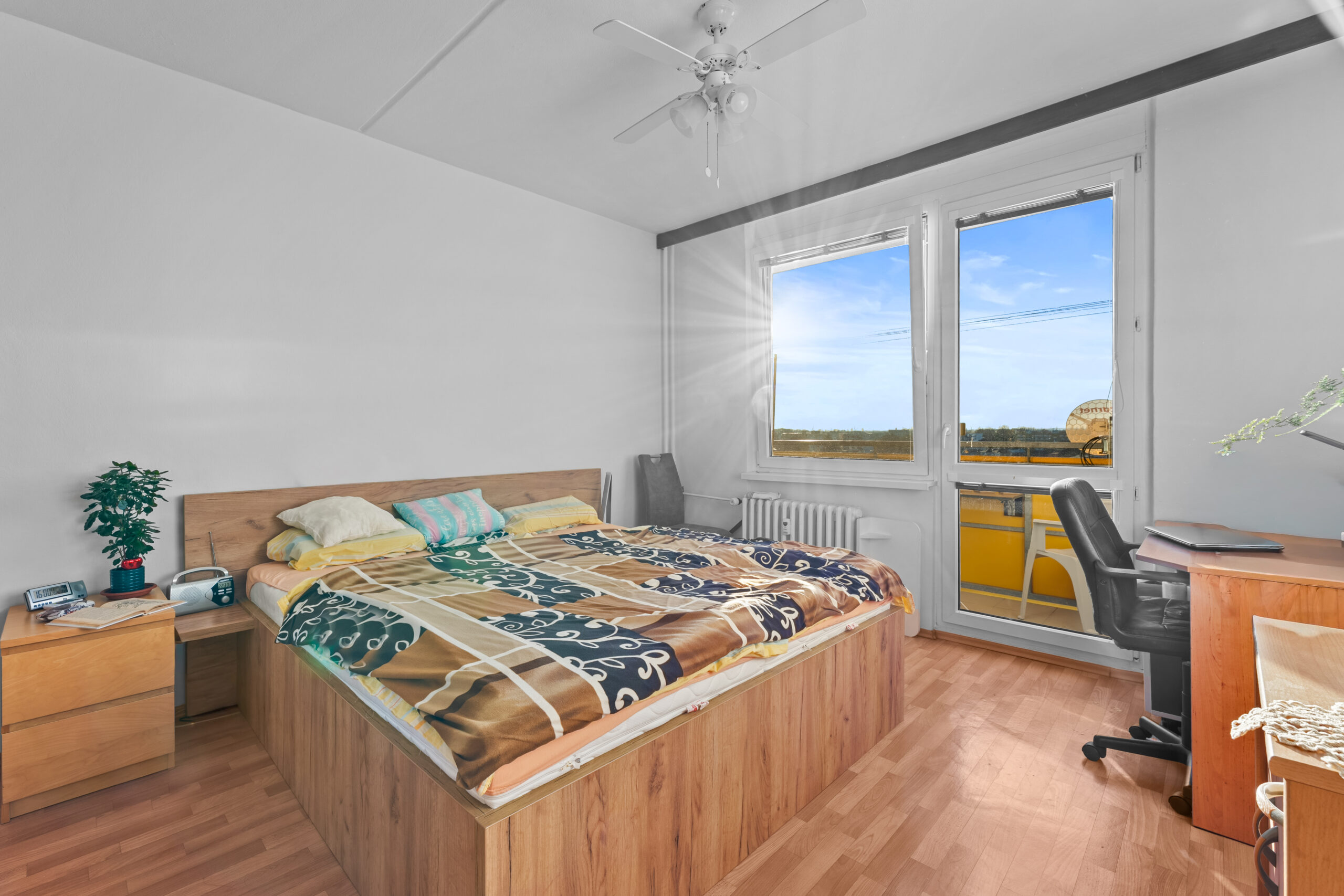 Dispozice bytu nabízí příjemné a vzdušné prostory s výhledem na okolní zeleň. Součástí bytu je také lodžie, kde můžete příjemně v klidu relaxovat. V bytě je k dispozici komora na patře, což poskytuje navíc úložný prostor pro vaše potřeby.